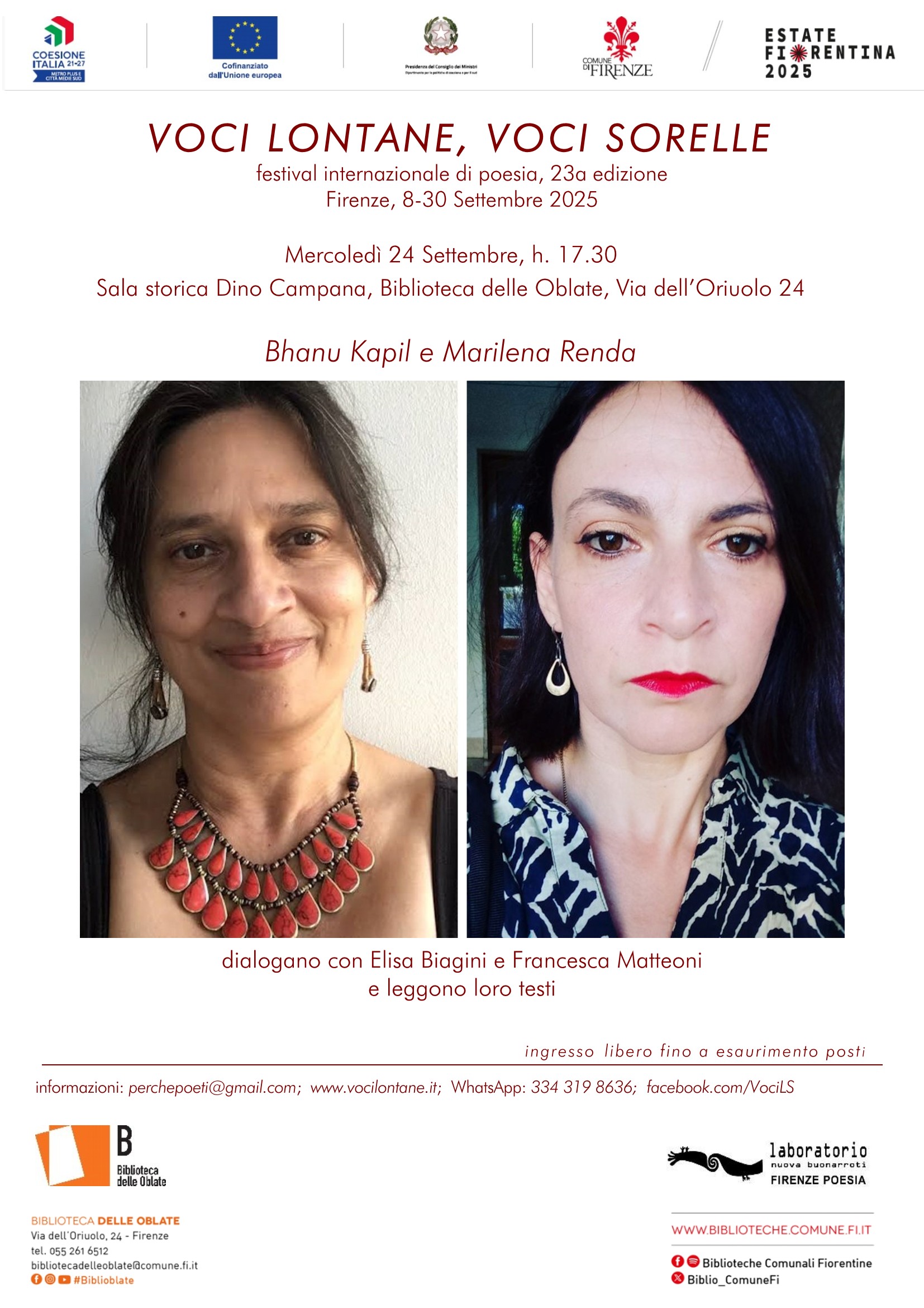 h.18.30. Elisa Biagini dialoga con la poeta anglo-indiana Bhanu Kapil. Segue lettura.