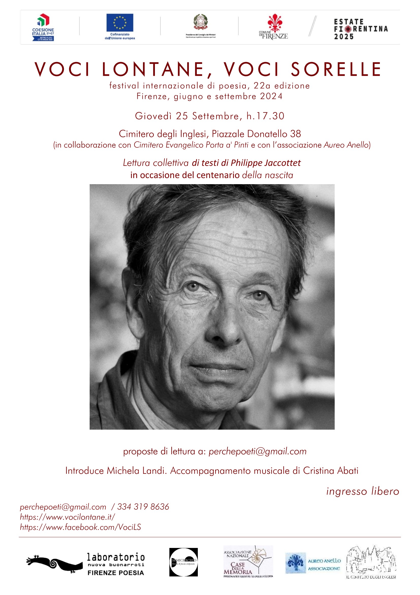 Prosecuzione, dopo la presentazione del poeta dell’8 Settembre, della celebrazione del centenario del grande poeta svizzero di lingua francese, nello scenario coinvolgente del Camposanto degli Inglesi. Si veda anche qui la raccolta allegata di testi esemplari (ma non esclusivi) approntato per agevolare la scelta. Raccolta più ampia della precedente , vista la difficoltà di reperire attualmente, non solo in commercio ma anche nelle biblioteche, la gran parte della produzione dello scrittore.